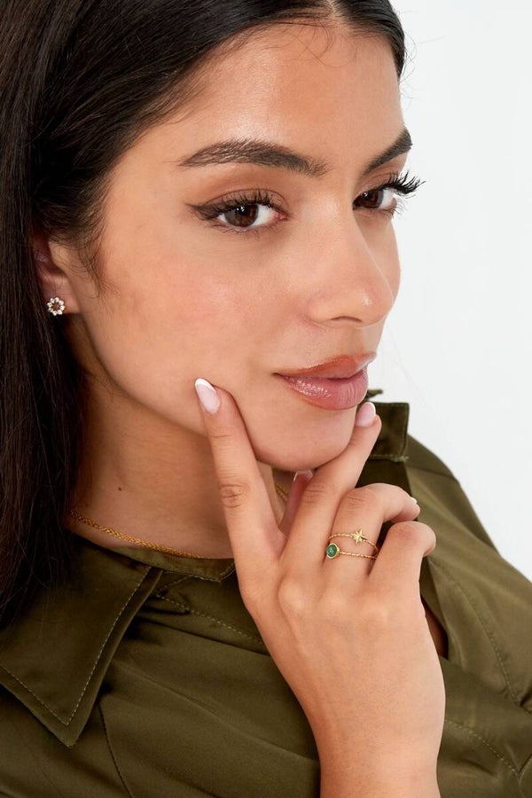 Hoe geweldig is deze dubbele ring met beige steen en ster!